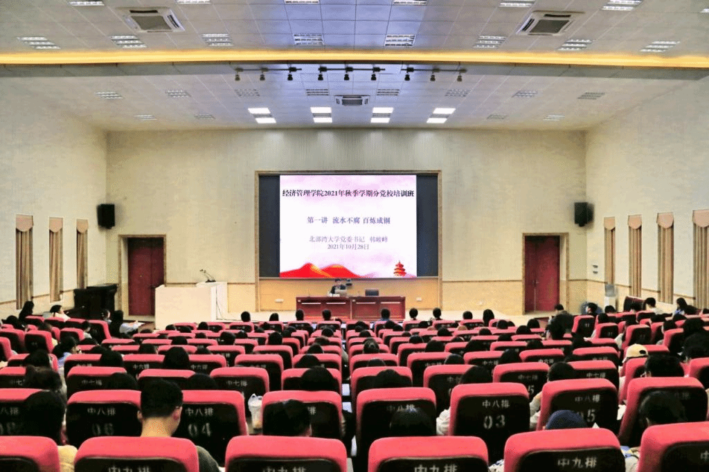 10月28日晚上,学校党委书记韩峻峰在12栋教学楼204报告厅以“流水不腐,百炼成钢”为题,为同学们讲授秋季学期党课培训的第一课。他与280多名经济管理学院的入党积极分子一起学习百年党史,感悟党的先进性和伟大领导力,传承湾大人的责任与担当。