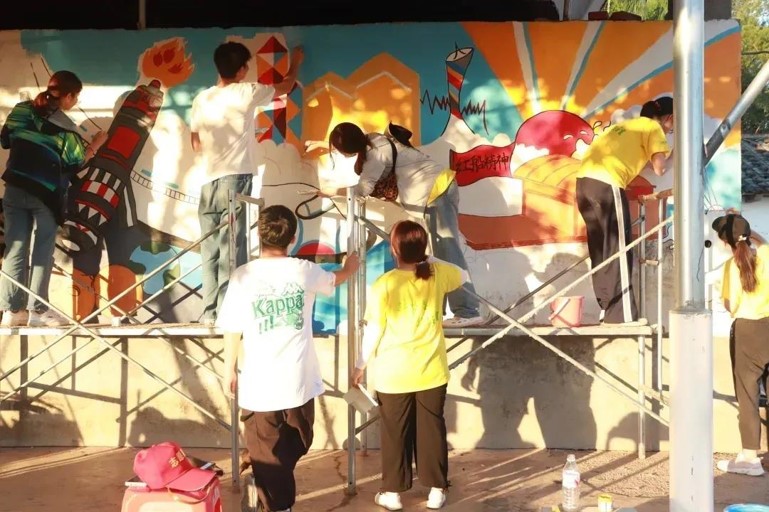学校“三下乡”“红色文化薪火‘乡传’”实践队进行红色彩绘