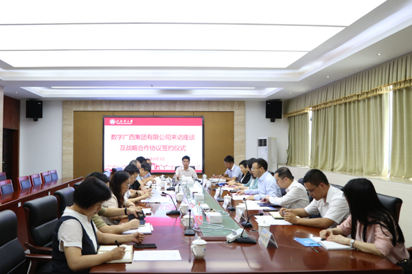 学校电子与信息工程学院、党校办、教务处、科技处、发展规划处、网络与教育技术中心、创新创业学院项目部相关负责人,数字广西集团云计算+AI事业群、战略投资部、广西数广迈越科技有限公司有关负责人参加上述活动。(余秋子 摄)