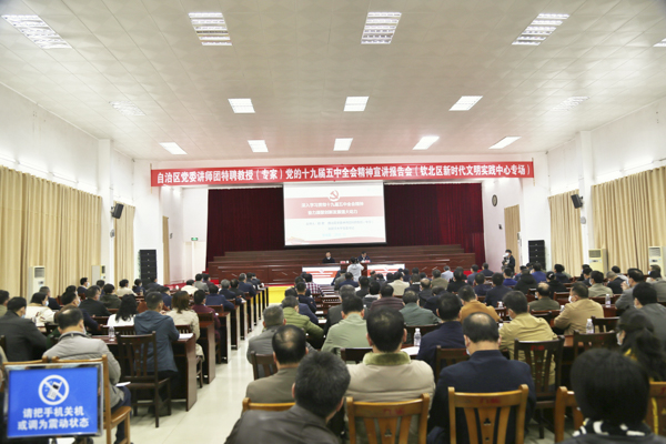 12月7日,必威西汉姆联党委书记赵君作为自治区党委讲师团特聘教授(专家)赴钦北区新时代文明实践中心开展学习贯彻党的十九届五中全会精神宣讲报告会。区委书记黄治华主持报告会,区委副书记、区长邓洁丽等区四家班子在家领导聆听宣讲。