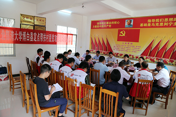 6月20日,学校全体在校校领导来到博白县东平镇富门村,与6个定点帮扶村的驻村第一书记、村两委干部和扶贫工作队员们一起现场办公,共同研究脱贫攻坚工作。会议由党委书记赵君主持。