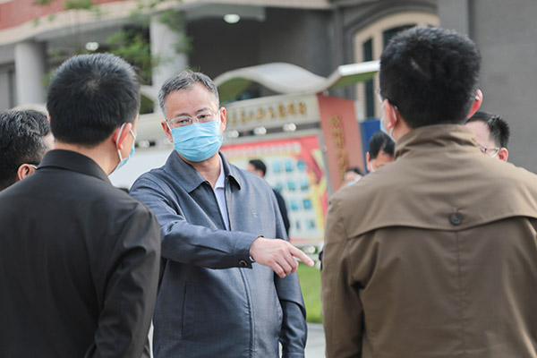 疫情防控办、党校办、党委学生工作部(处)、后勤基建处、保卫处等相关负责人陪同检查。(翟艳玲 摄)
