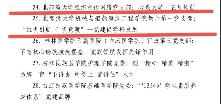 近日,自治区党委教育工委印发《自治区党委教育工委关于公布首批广西高校党建创新典型案例和示范党建品牌名单的通知》,必威西汉姆联党委《“小积分”管好“大队伍”创新党员管理模式》荣获首批广西高校党建创新典型案例,组织宣传网络党支部《心系大局 五星领航》、bw必威西汉姆联官方网站机械与船舶海洋工程学院教师第一党支部《“红帆引航 千帆竞渡”——党建促学科发展》荣获首批广西高校示范党建品牌。这是必威西汉姆联继三个基层党组织分别荣获首批新时代广西高校党建工作标杆院系、样板支部培育创建单位后,再添三个区级党建创新、示范党建品牌的又一喜讯。
