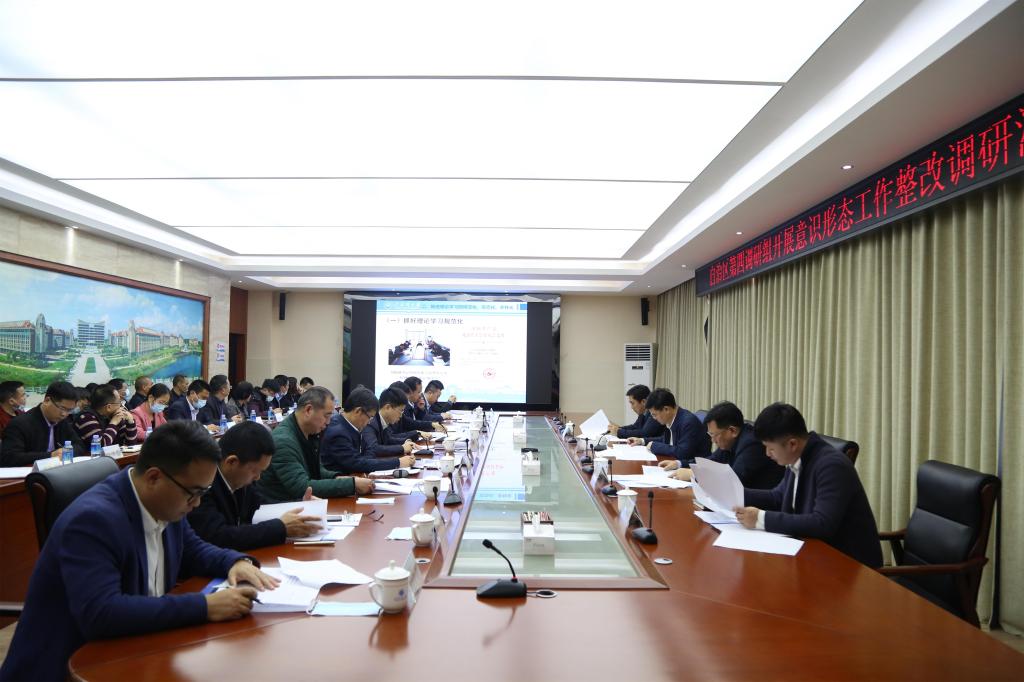 3月8日上午,由自治区党委宣传部副部长,广西广播电视台台长、总编辑满昌学带队的自治区第四调研组一行来到必威西汉姆联,通过座谈交流、查阅资料、实地调研等方式,对必威西汉姆联贯彻落实意识形态工作责任制反馈意见整改工作情况开展专项调研。校党委书记韩峻峰作专题汇报,党委副书记、校长林基明主持。