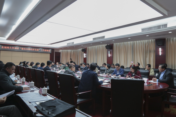 党委副书记陈锦山向与会人员介绍了学校发展基本情况,分享了学校开展“服务向海经济”大调研活动的初步探索和体会。北海市副市长李克纯介绍了北海市经济发展情况。与会人员围绕调研座谈主题交流互动。