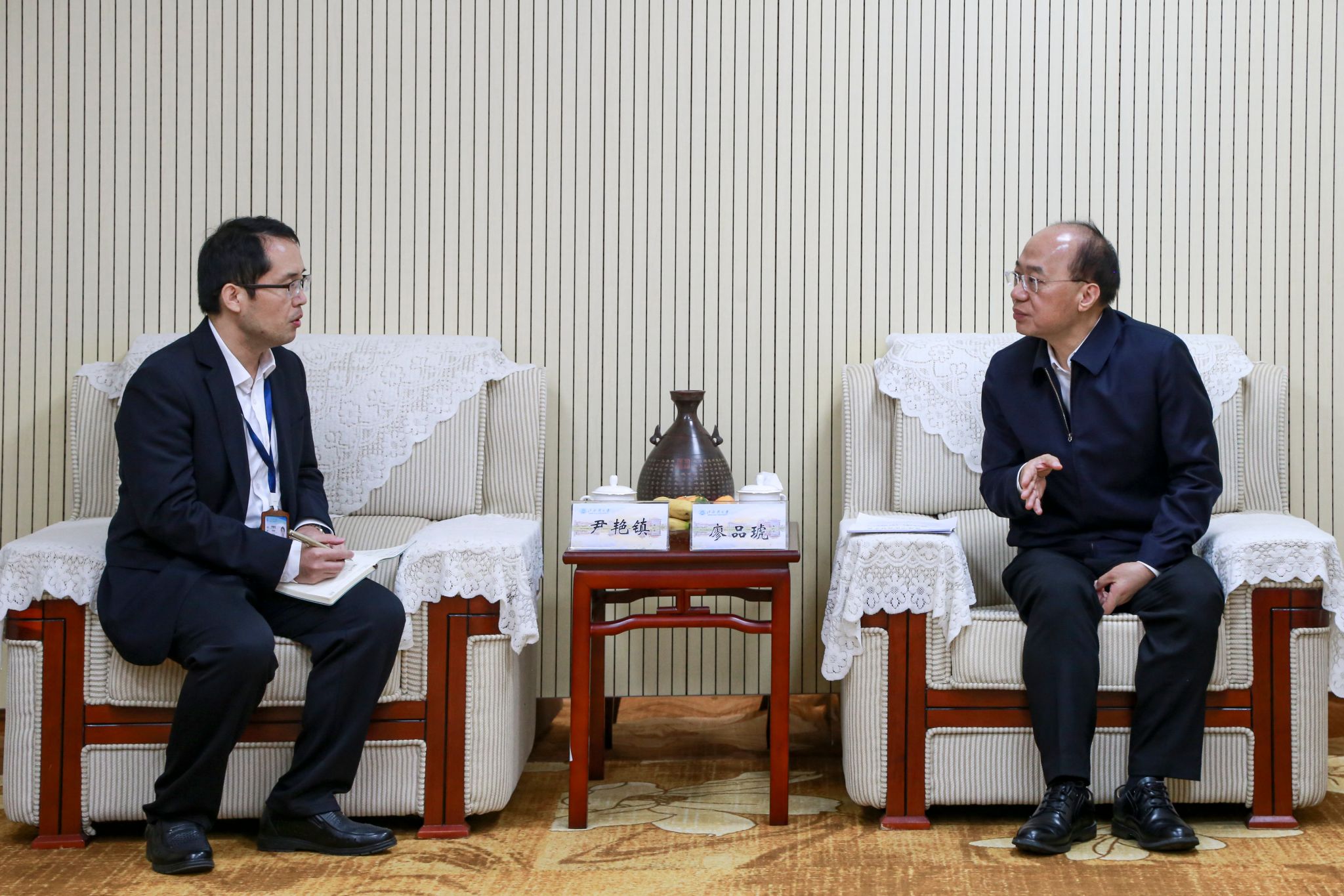 自治区科技厅厅长李国忠、副厅长廖文军、钦州市委书记钟畅姿、市委常委、秘书长曾智、必威西汉姆联党委副书记陈磊,校党委常委、副校长陆衡、陈丹参加会见。(许舒婷 摄)