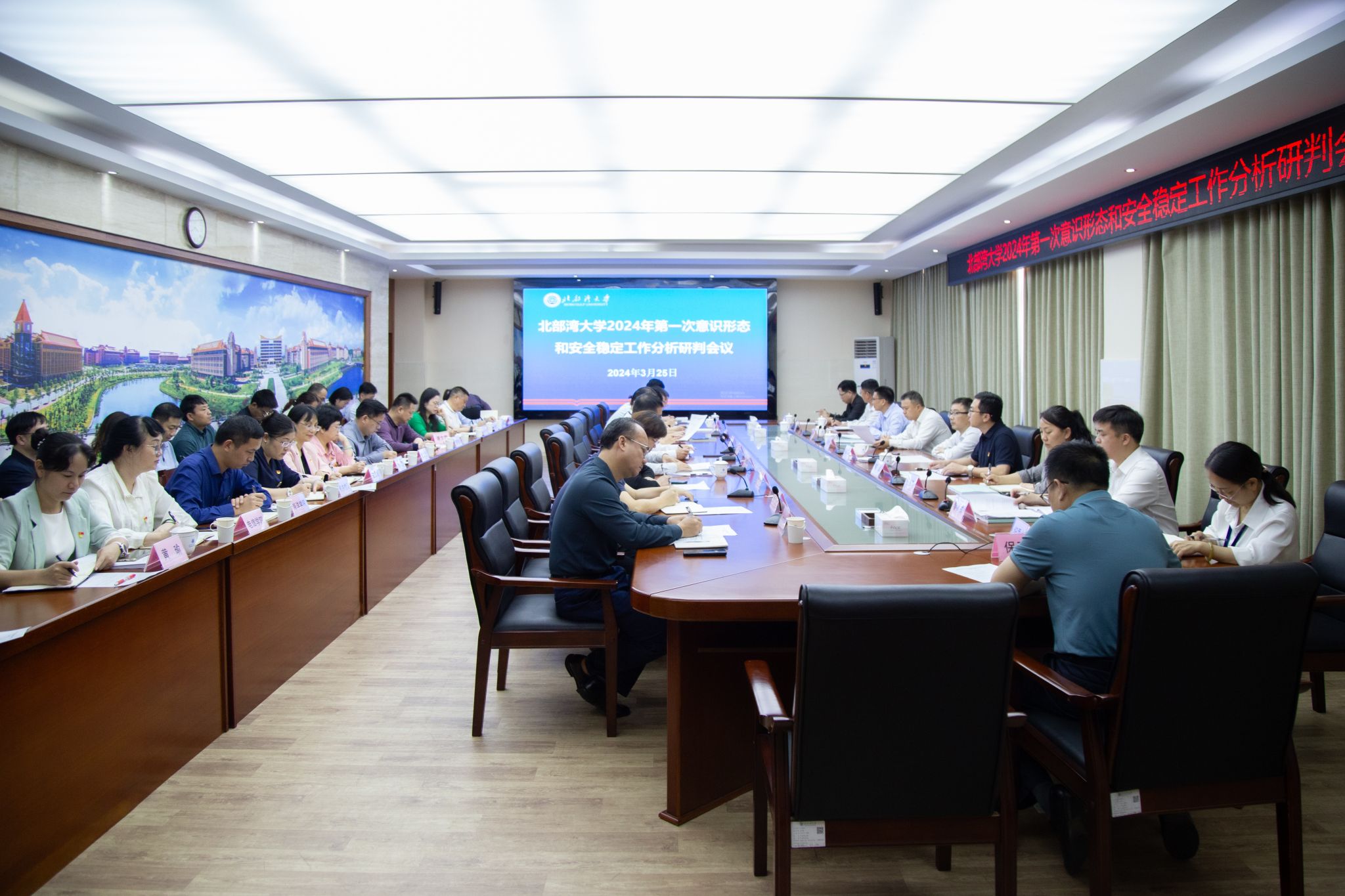 3月25日,学校在办公楼523会议室召开2024年第一次意识形态和安全稳定工作分析研判会。校党委书记徐华蕊出席会议,校党委副书记陈磊主持,校党委常委、副校长闫松银参会。
