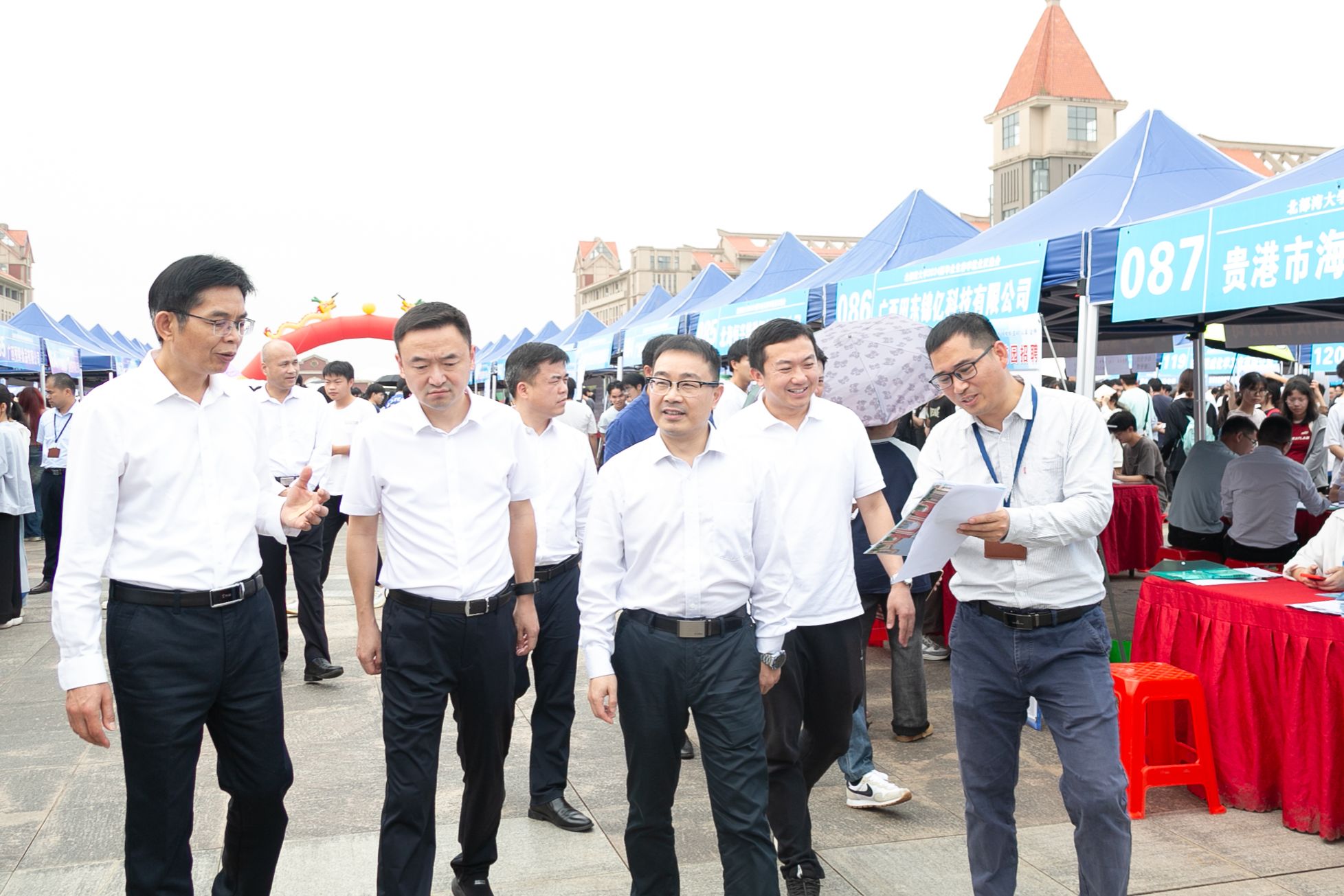 徐华蕊书记(中)、苗剑校长(左二)、陈磊副书记(右二)深入招聘会现场