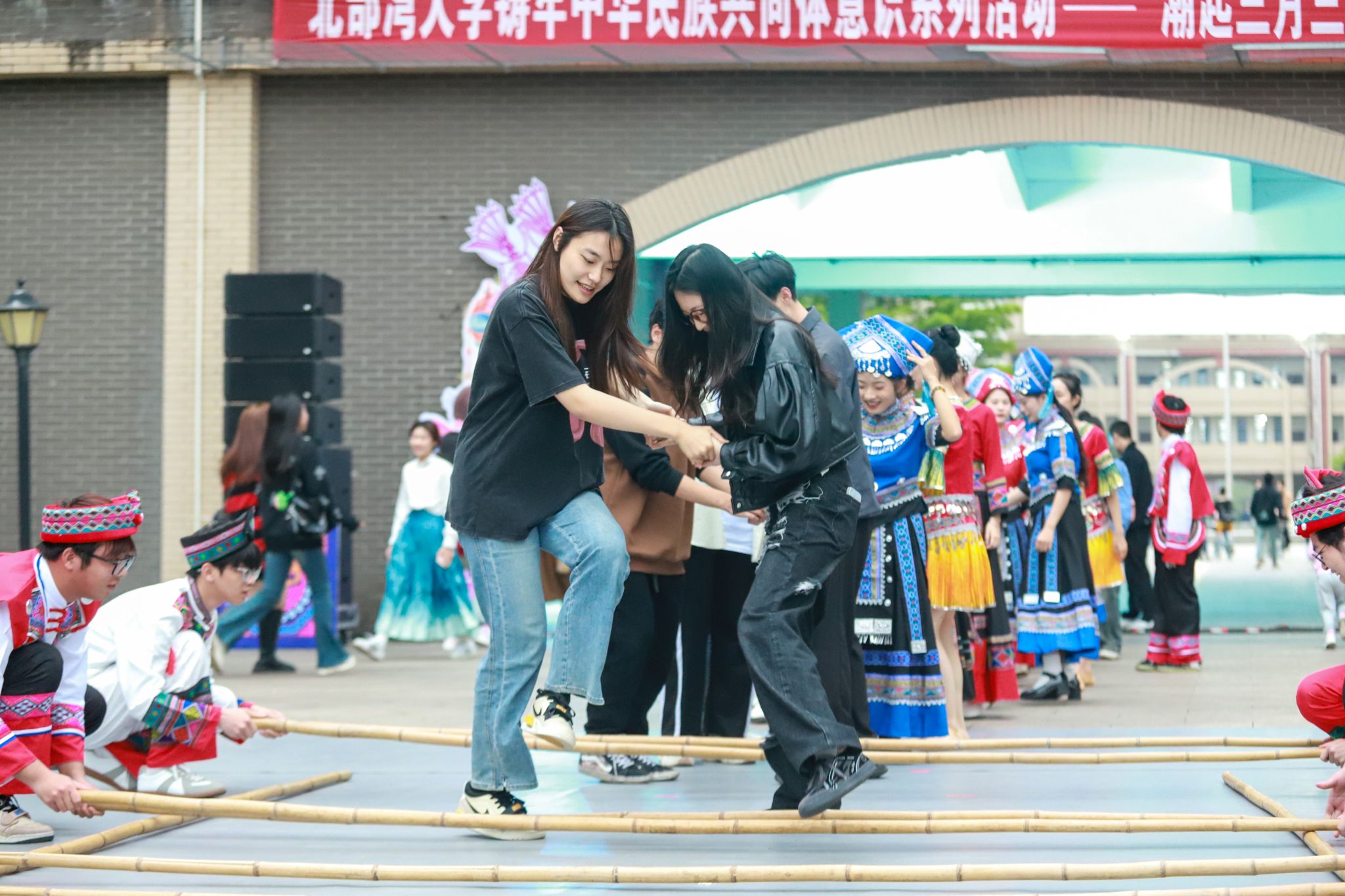 “踏平了山路唱山歌,撒开了渔网唱渔歌,唱起那牧歌牛羊多呀,多过了天上的群星座座……”4月9日,独具广西特色的《大地飞歌》唱响在湾大校园。在“广西三月三”到来之际,学校精心组织了“潮起三月三 奋进新征程”民俗游园会,丰富多彩的民俗文化体验活动和精彩的民俗文艺演出吸引了师生们驻足观看体验,校党委书记徐华蕊、校党委副书记陈磊也来到现场,和师生一同体验民俗文化、观看文艺演出。
