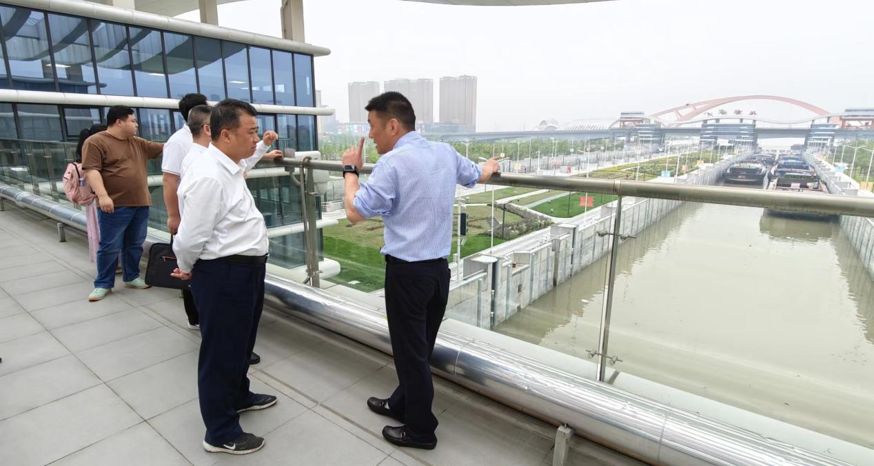 在杭州交投船闸管理有限公司,闫松银一行实地参观了船闸的运行现场,并与相关专家领导就船闸智能化管理、安全监管等进行了深入交流。