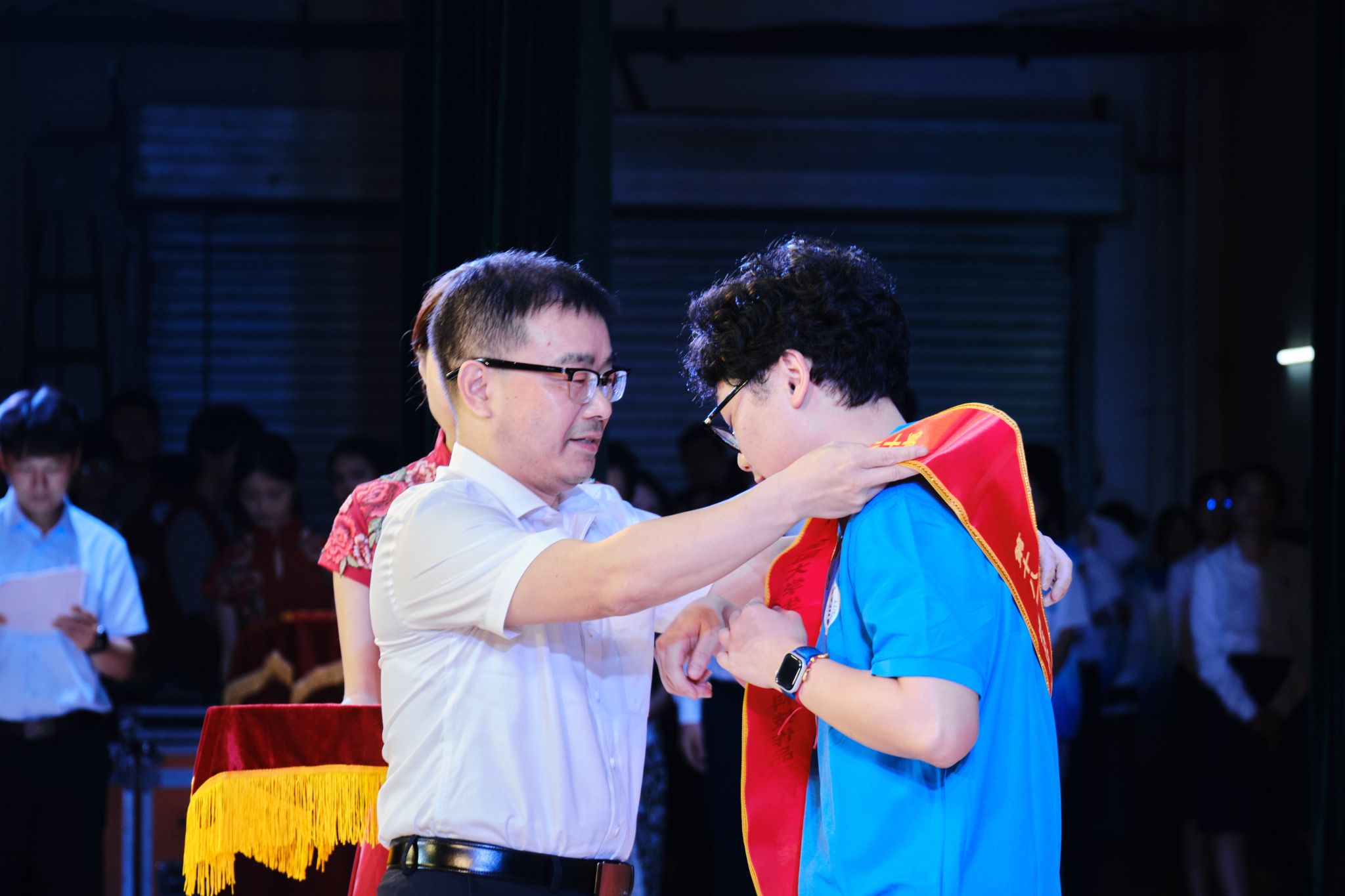 与会领导为必威西汉姆联中国大学生自强之星获得者、“挑战杯”全国大学生课外学术科技作品竞赛获奖团队、2023年度五四红旗团委、五四红旗团支部、优秀共青团干部、优秀共青团员颁奖。