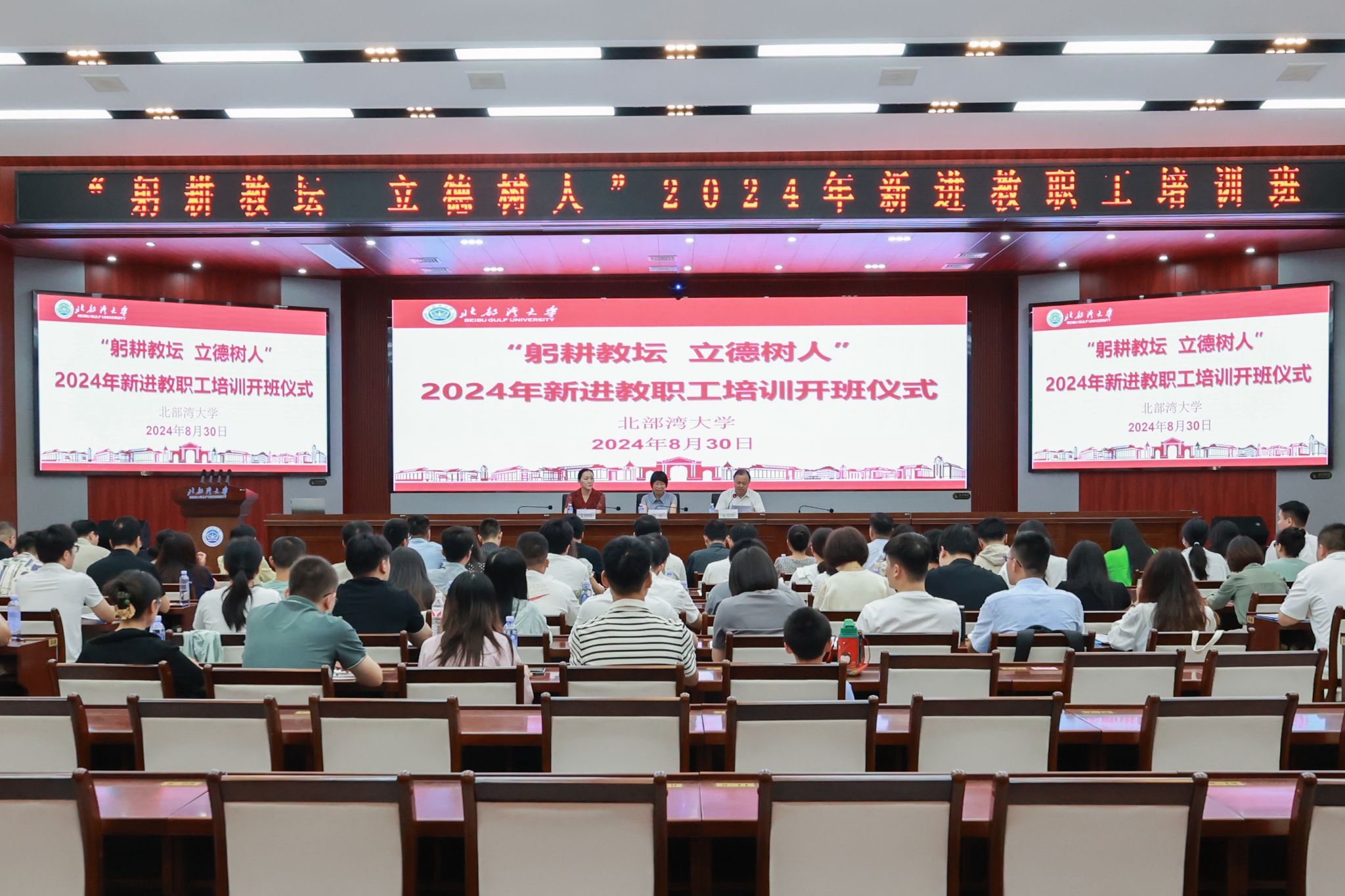 8月30日至9月1日,学校在办公楼一楼报告厅为98名新教职工举办入职培训。校党委书记徐华蕊,校党委副书记、校长苗剑,校党委副书记唐高华,自治区纪委监委驻bw必威西汉姆联官方网站纪检监察组组长、校党委常委、纪委书记谢立平,副校长尹艳镇及有关职能部门负责人分别作专题报告。校党委常委、副校长陆衡出席开班仪式。