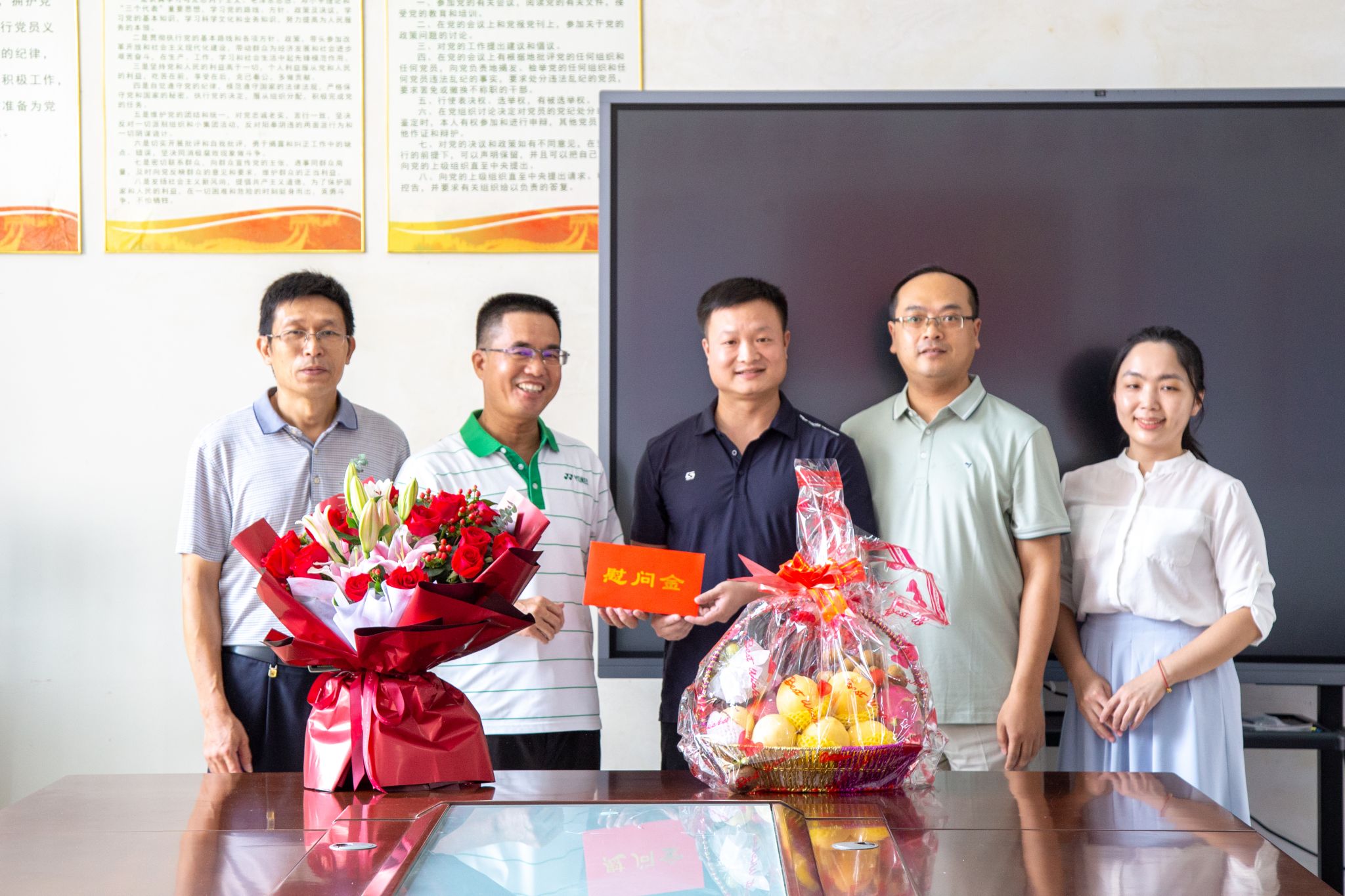 校党委常委、副校长梁智(左二)看望慰问体育学院一线教师代表