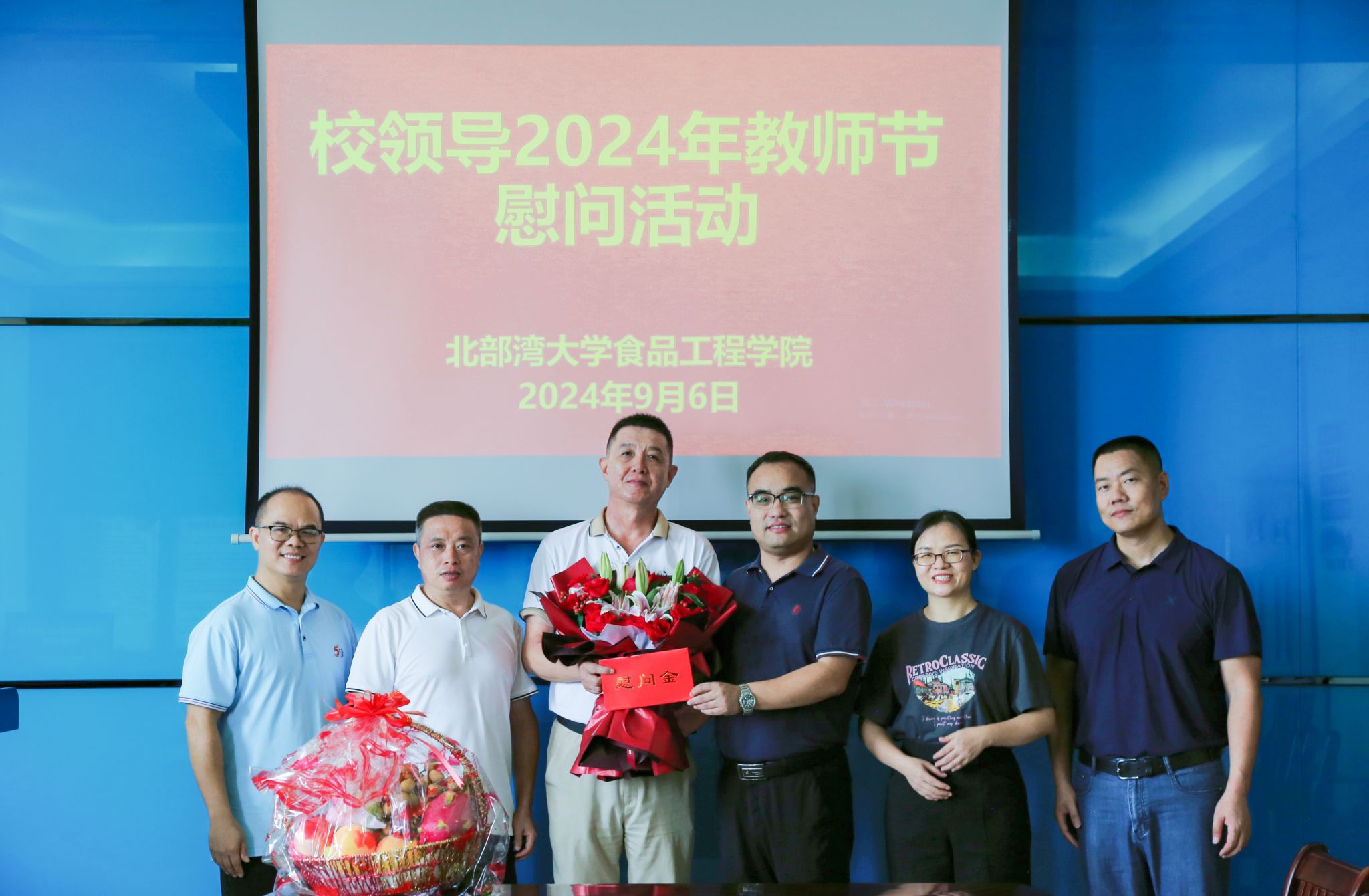 校党委常委、副校长马秀明(右三)看望慰问食品工程学院一线教师代表