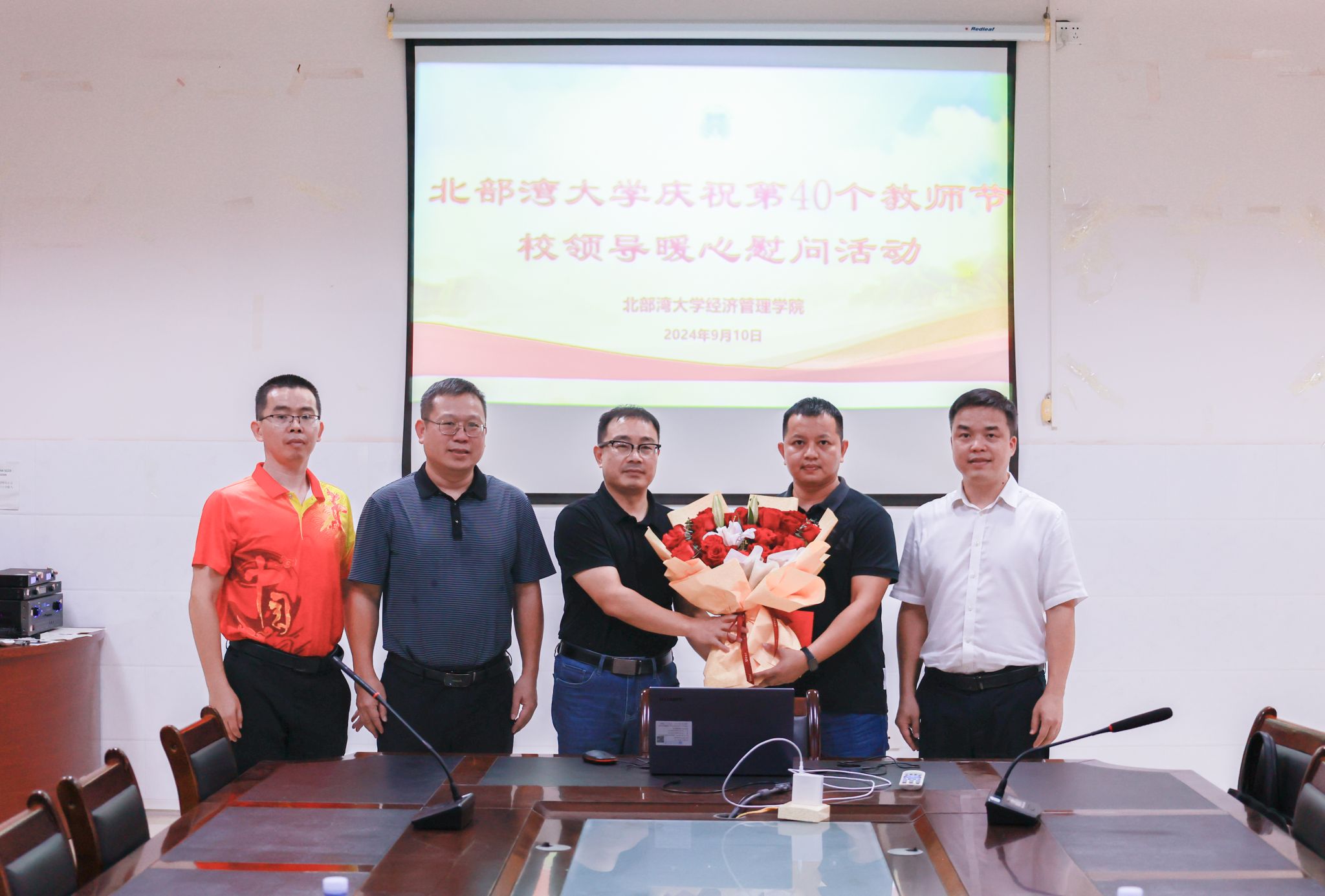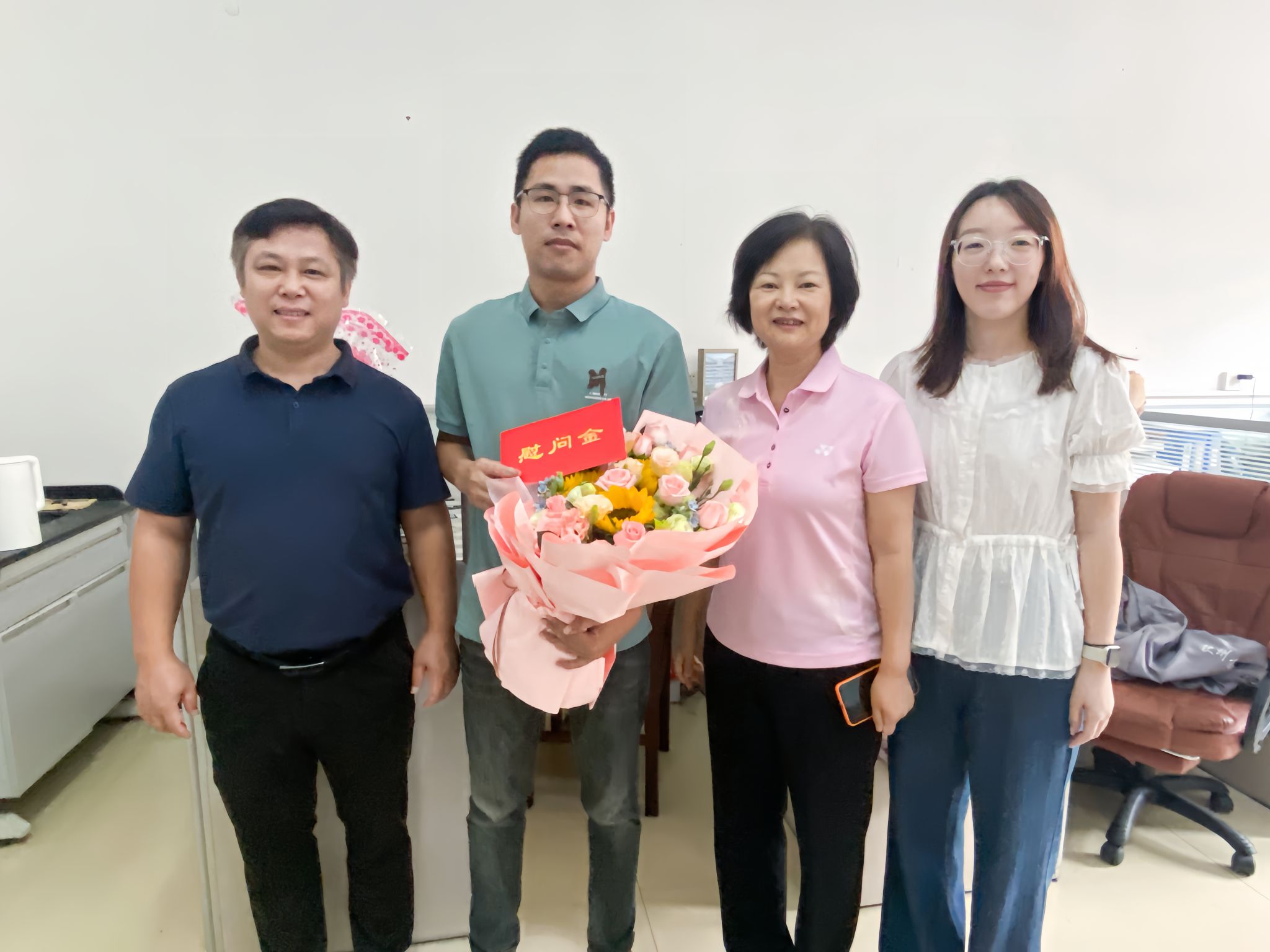 校党委书记徐华蕊(左三)看望慰问经济管理学院一线教师代表