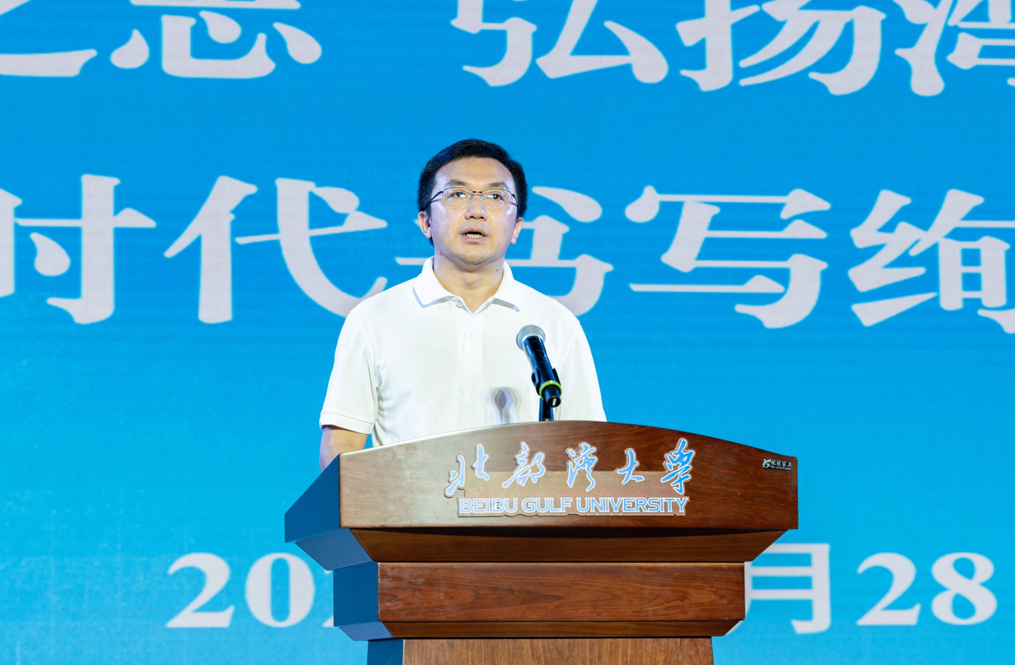 9月28日,校党委书记徐华蕊以“心怀鸿鹄之志,弘扬湾大精神特质,在新时代书写绚丽青春”为题,在体育馆为2024级新生讲授“思政第一课”。校党委副书记陈磊主持。全体在家校领导,各部门、各学院相关负责人,2024级新生辅导员同上一堂课。