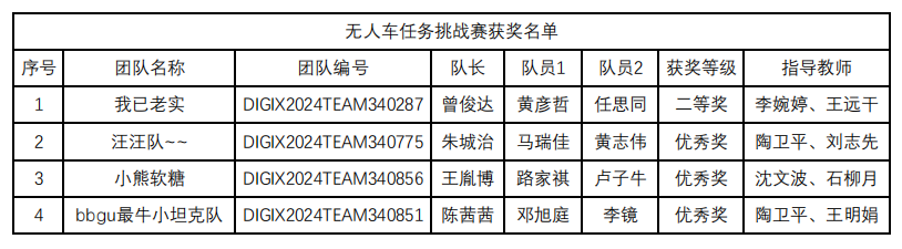 无人车任务挑战赛获奖名单