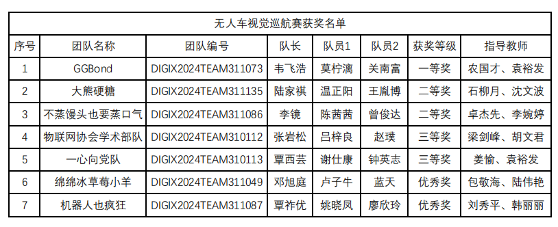 无人车视觉巡航赛获奖名单