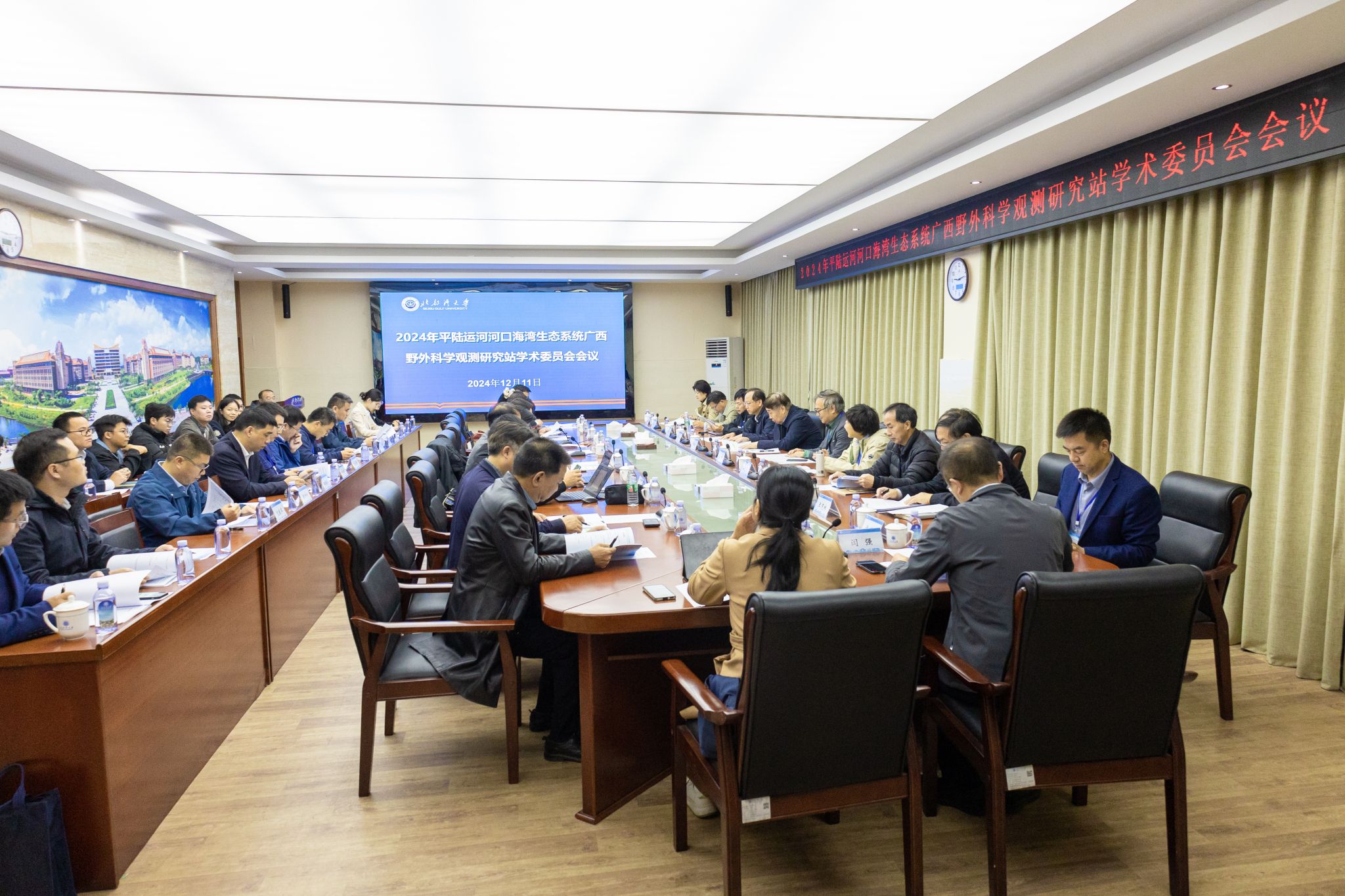 12月11日,平陆运河河口海湾生态系统广西野外科学观测研究站(以下简称“观测站”)2024年学术委员会会议在办公楼523会议室举办。校党委副书记、校长苗剑参加。中国科学院烟台海岸带研究所研究员秦松、自然资源部第四海洋研究所研究员徐兴永等12位学术委员会委员,中国科学院烟台海岸带研究所及自治区海洋局系统等8位代表参会。会议开场和颁发聘书环节由校党委常委、副校长陈丹主持,学术报告与交流环节由中国科学院生态环境研究中心院士傅伯杰主持。