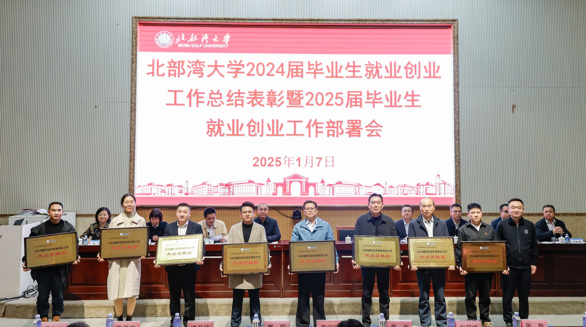 会上,校党委副书记唐高华宣读表彰文件。主席台就座领导为获得2024届毕业生就业创业工作“先进集体”“先进个人”“专业就业卓越奖”“用人单位就业杰出贡献奖”的个人或集体颁奖。相关奖项受表彰代表依次上台作经验交流发言。