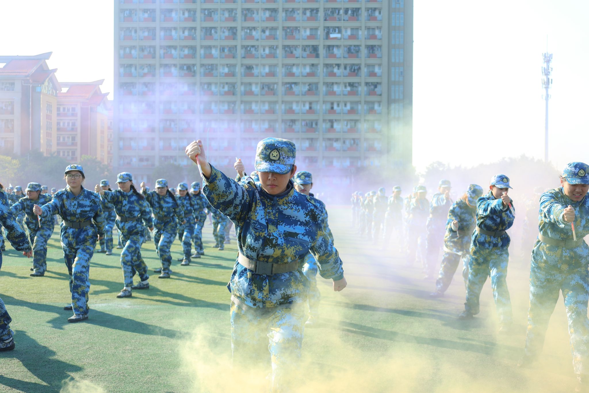 在庄严的国歌声中,大会正式拉开序幕。“标兵就位!”军旗飘飘,2024级学生经历了14天的军训磨炼,终于迎来了检验训练成果、展现青春风采的时刻。各方队昂首阔步、目光坚定,步伐整齐有力,口号响彻云霄,依次走过主席台。旗语方队、捕俘刀方队、捕俘拳方队、战术演练方队的展演气势恢宏、英姿飒爽。湾大学子以整齐划一的动作、震天动地的呐喊、配合无间的战术、冲破硝烟的英勇、取得胜利的欢呼,定格了一个个汗水与成长交织、磨砺与荣耀并存的难忘瞬间,充分彰显了严谨优良的作风、坚毅奋发的精神面貌和昂扬自信的青春朝气。