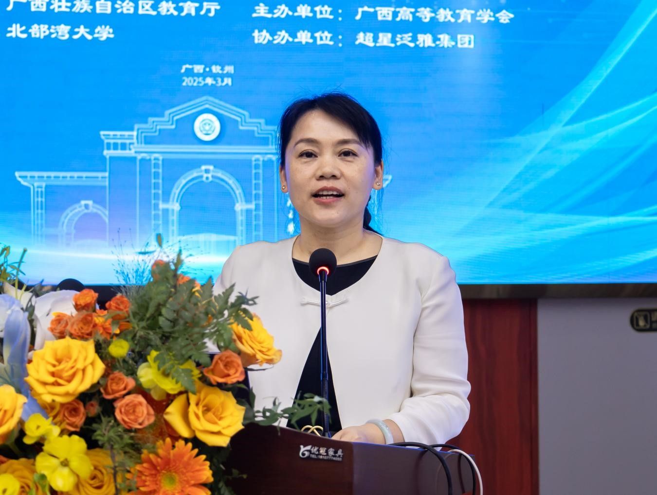 校长助理周丽娟在欢迎辞中表示,人工智能与高教融合既是挑战更是机遇,学校始终以服务北部湾经济区发展为己任,践行“技术为教育赋能”的理念,深化教育数字化转型。未来,学校将以人工智能赋能育人模式创新,推动构建兼具人文关怀与科技赋能的新型教育生态,为培育时代栋梁、开创高等教育新格局贡献力量。