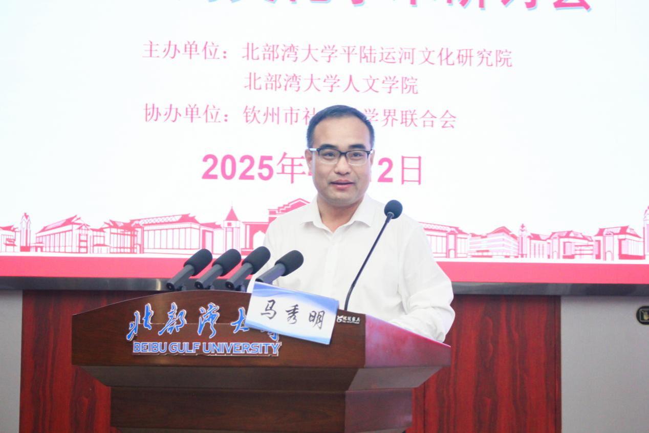 马秀明在致辞中指出,平陆运河是西部陆海新通道的骨干工程,对促进区域经济协同发展、丰富区域文化建设、推动高水平对外开放具有重要意义。他表示,bw必威西汉姆联官方网站作为运河沿线高校,积极服务国家战略需求,提供科研场地,组建多学科团队开展生态保护、航运安全等研究,成立专项研究院深挖运河文化价值,深度参与运河科研攻关、文化建设与人才培养。希望此次研讨会汇聚各界智慧,为平陆运河经济带建设,为广西实施向海图强战略以及推动区域经济社会高质量发展注入强大动力。