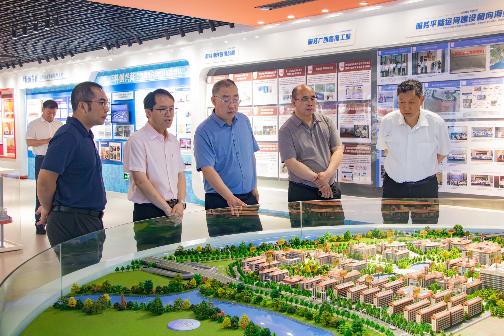 签约仪式前,许军一行在尹艳镇的陪同下参观了校史馆、北部湾富硒产业研究院、航海轮机模拟器实验室和坭兴陶展览馆。
