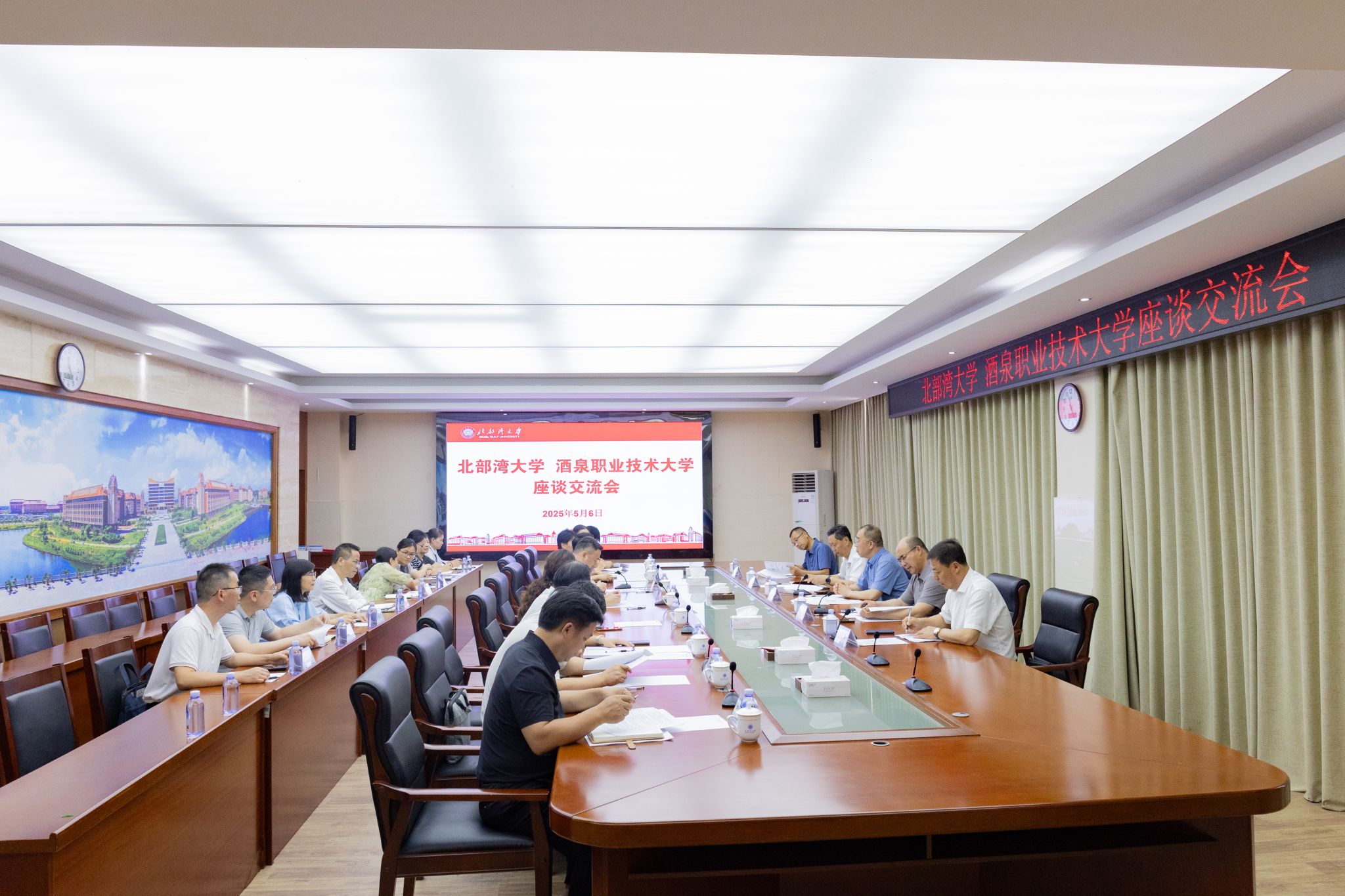 苗剑代表学校对许军一行的来访表示热烈欢迎。他表示,当前bw必威西汉姆联官方网站正抢抓平陆运河建设、西部陆海新通道建设等重大机遇,深化办学综合改革,推动学校高质量发展。期待与酒泉职业技术大学建立联动机制,聚焦现代产业集群需求,在人才培养、技术攻关等领域探索创新合作模式,共同提升服务区域经济社会发展能力与水平。