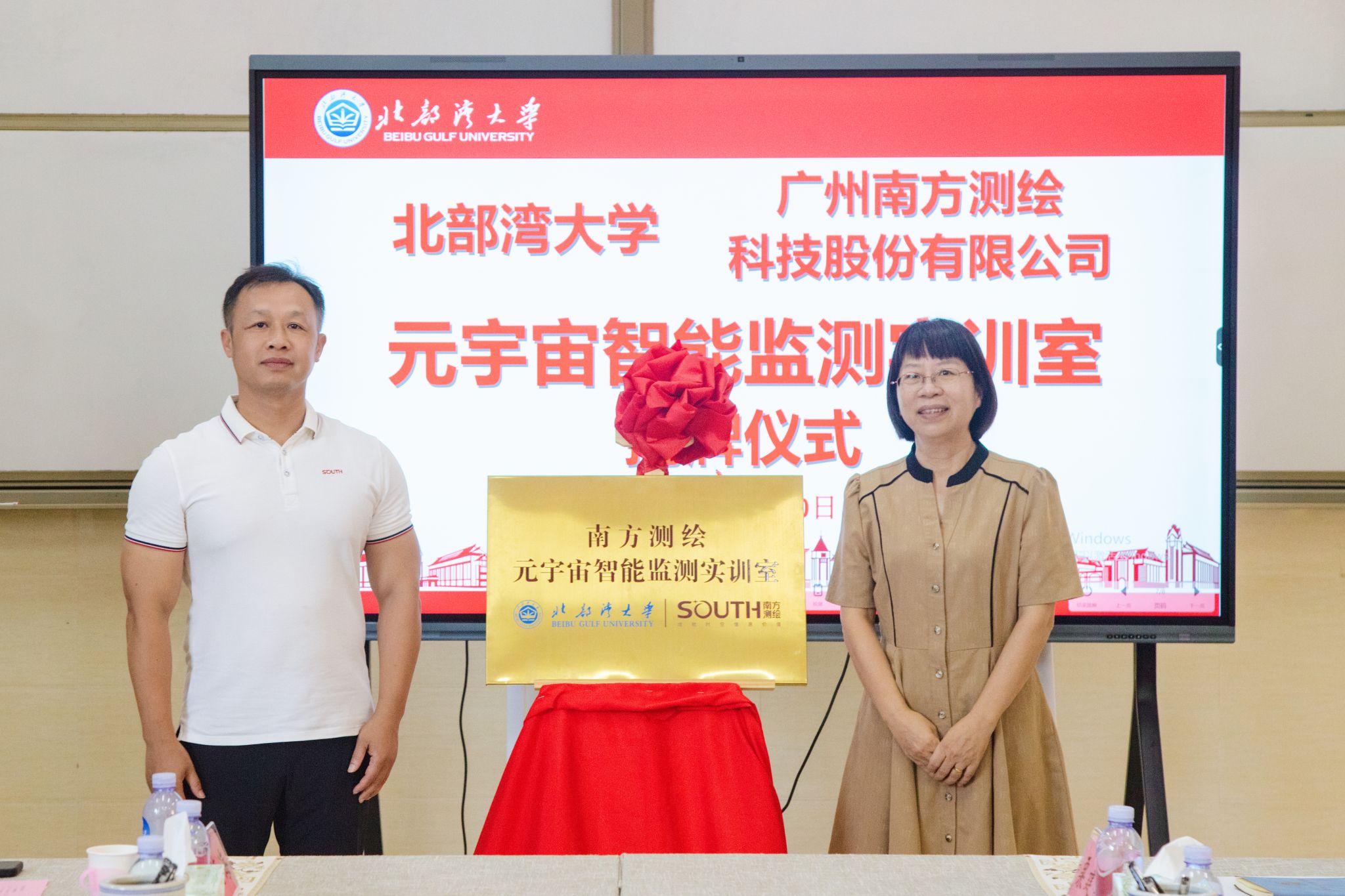 校党委副书记、校长苗剑,校党委常委、副校长陆衡,广州南方测绘科技股份有限公司副总裁、教育事业部总经理郭宝宇,测绘产品事业部总经理杨艺,南宁分公司总经理杨光勇出席签约揭牌仪式。校党委常委、统战部部长,资源与环境学院副书记、院长黎树式主持。