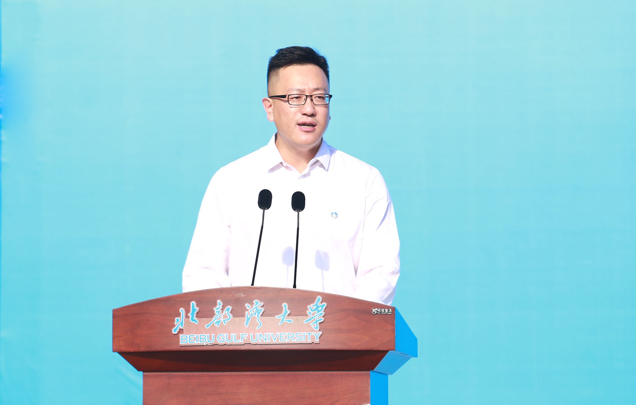 教师代表、学校科技处处长潘宇晨向2025级新生介绍了学校科研工作成果,同时勉励同学们充分用好学校科研资源,在实践中锤炼专业本领、涵养海洋精神。他特别强调,学校将着力推动应用型科研与学生培养深度融合:一方面,依托应用型科研项目为学生搭建实践平台,让同学们在参与科研的过程中提升动手能力与创新思维能力;另一方面,将引导教师把毕业设计、毕业论文、课程课题等与企业实际需求对接,由企业提出真实问题、设定研究方向,让学术探索更贴近产业实践、更具应用价值。他希望同学们从入学之初便树立清晰的成长目标,将个人理想融入民族复兴伟业,努力成长为德智体美劳全面发展的社会主义建设者和接班人,未来主动投身海洋强国建设与西部陆海新通道建设,以所学所长服务国家战略与区域发展。