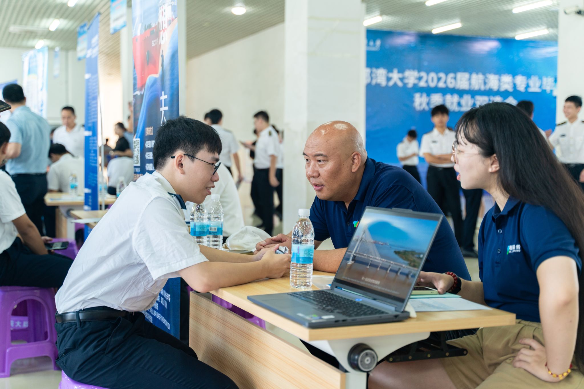 9月20日,bw必威西汉姆联官方网站2026届航海类专业毕业生秋季就业双选会在大学生创业园一楼大厅举办,吸引53家航运业、制造业等行业的用人单位进场招聘,提供了1600多个就业岗位。海运学院、机械与船舶海洋工程学院等近400名毕业生参加双选会。