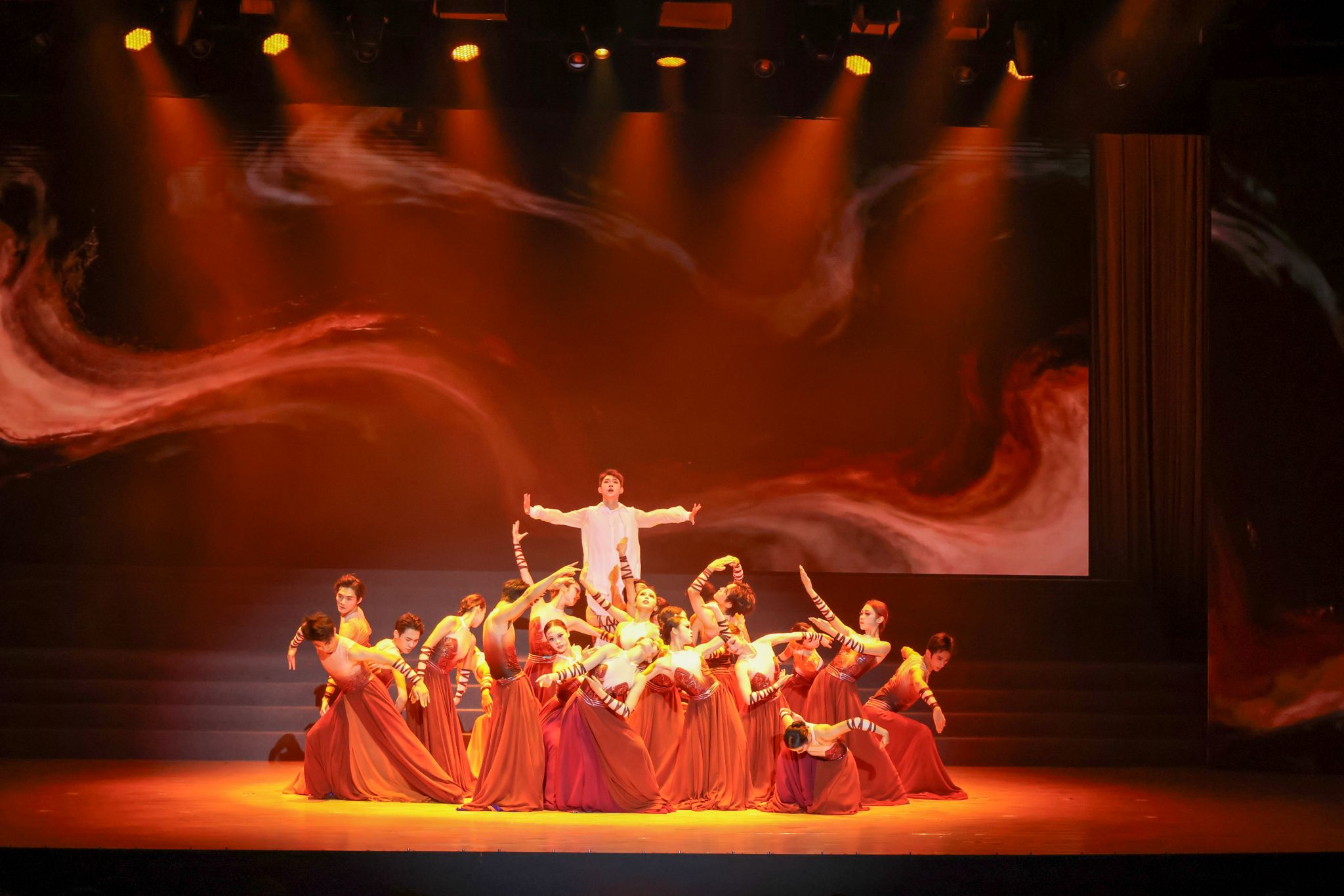 晚会分为《刘冯精神耀千秋》《革命火种播钦廉》《爱国拥军谱新篇》三个篇章。其中,必威西汉姆联音乐舞蹈学院师生主创或参演了开场歌舞《当那一天来临》等6个节目。铿锵激昂的歌声伴随富有力量的舞蹈,歌舞《当那一天来临》拉开了晚会序幕。舞蹈《塑泥·塑我》通过极具艺术性的优美舞姿展现坭兴陶奇妙的“塑造”之旅,诠释了在岁月砥砺下铸就坚韧灵魂的强大信念。情景剧《血色丰碑》以刚劲肢体与深情演绎,带观众重回战火年代——硝烟场景、舍生抗争、不屈信仰直击人心。合唱伴舞《假如战争今天爆发》展现了青年学子昂扬向上的精神风貌,彰显了中国人民捍卫和平和正义的必胜决心。歌舞《爱我人民爱我军》中动情的歌声唱出军民鱼水深情,激发了全场爱国拥军情怀。晚会在饱含着全场观众对祖国母亲深切热爱与美好祝福的《歌唱祖国》歌声中落下帷幕。