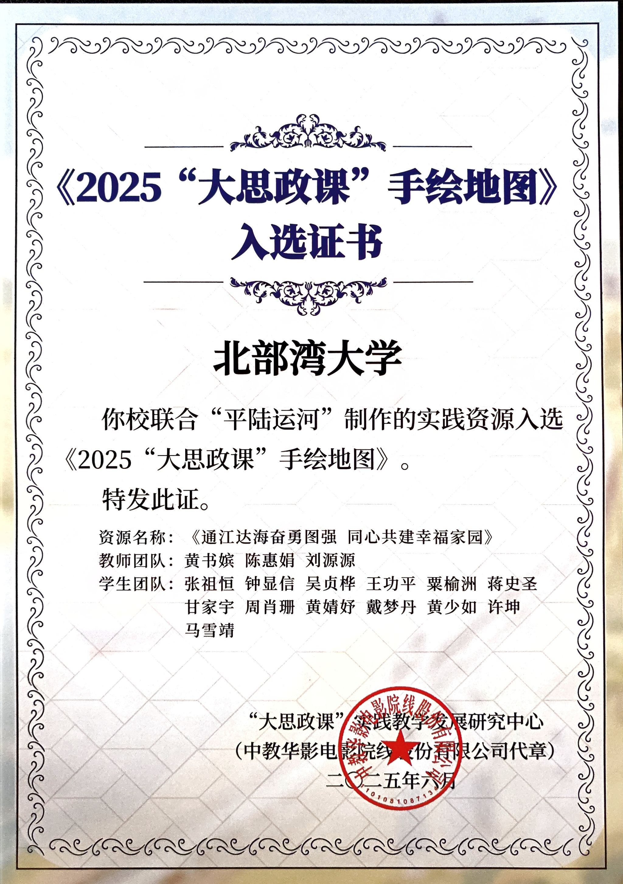 近日,教育部“大思政课”实践教学发展研究中心公布《2025“大思政课”手绘地图》入选名单。必威西汉姆联马克思主义学院的3名教师和理学院、音乐舞蹈学院的13名学生共同提交的实践资源作品《通江达海奋勇图强 同心共建幸福家园》成功入选,并纳入“数字地图”体系。“大思政课”实践教学发展研究中心特向必威西汉姆联发来感谢信,充分肯定必威西汉姆联师生在实践教学资源建设中的积极贡献。