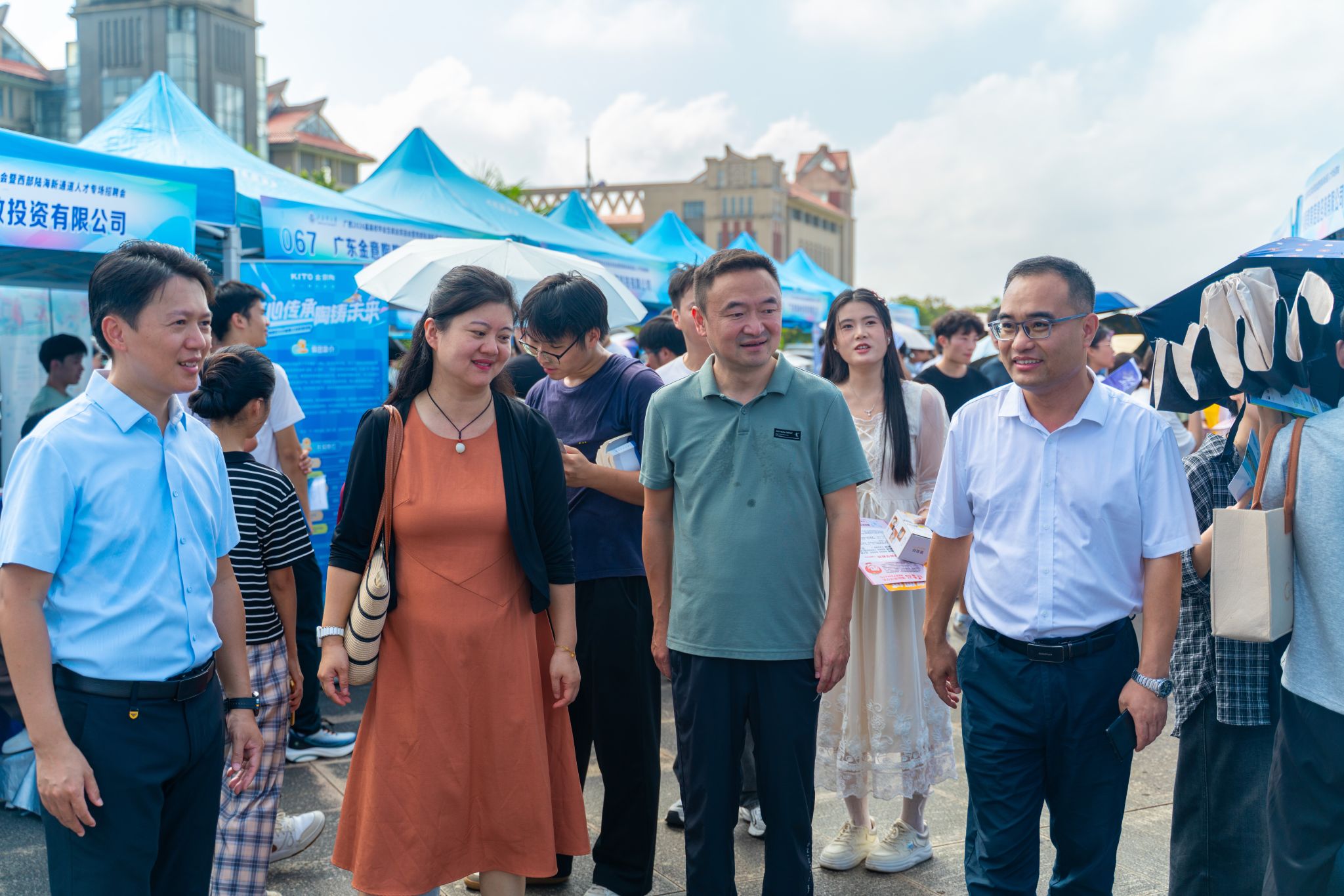 教育厅主管部门负责人莅临现场指导工作,和校党委书记、校长苗剑,校党委常委、副校长马秀明一起深入双选会走访,与用人单位亲切交流,详细了解岗位需求、行业发展趋势及对学校人才培养、就业服务、校企合作等方面的意见与建议。苗剑鼓励毕业生积极把握西部陆海新通道建设带来的就业机遇,主动展示专业能力和综合素质,找到理想的工作岗位,到祖国最需要的地方建功立业,贡献青春力量。