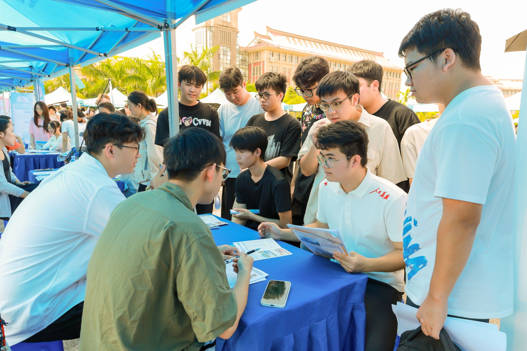 10月16日,广西2026届高校毕业生就业双选会暨西部陆海新通道人才专场招聘会在学校中心广场举办。本次双选会吸引了来自物流航运、能源化工、智能制造、数字经济、教育文化、金融服务等多个行业的178家优质用人单位进校揽才,提供就业岗位7533个,现场参与学生超过5000人,投递简历近2000份,初步达成就业意向约800人次。