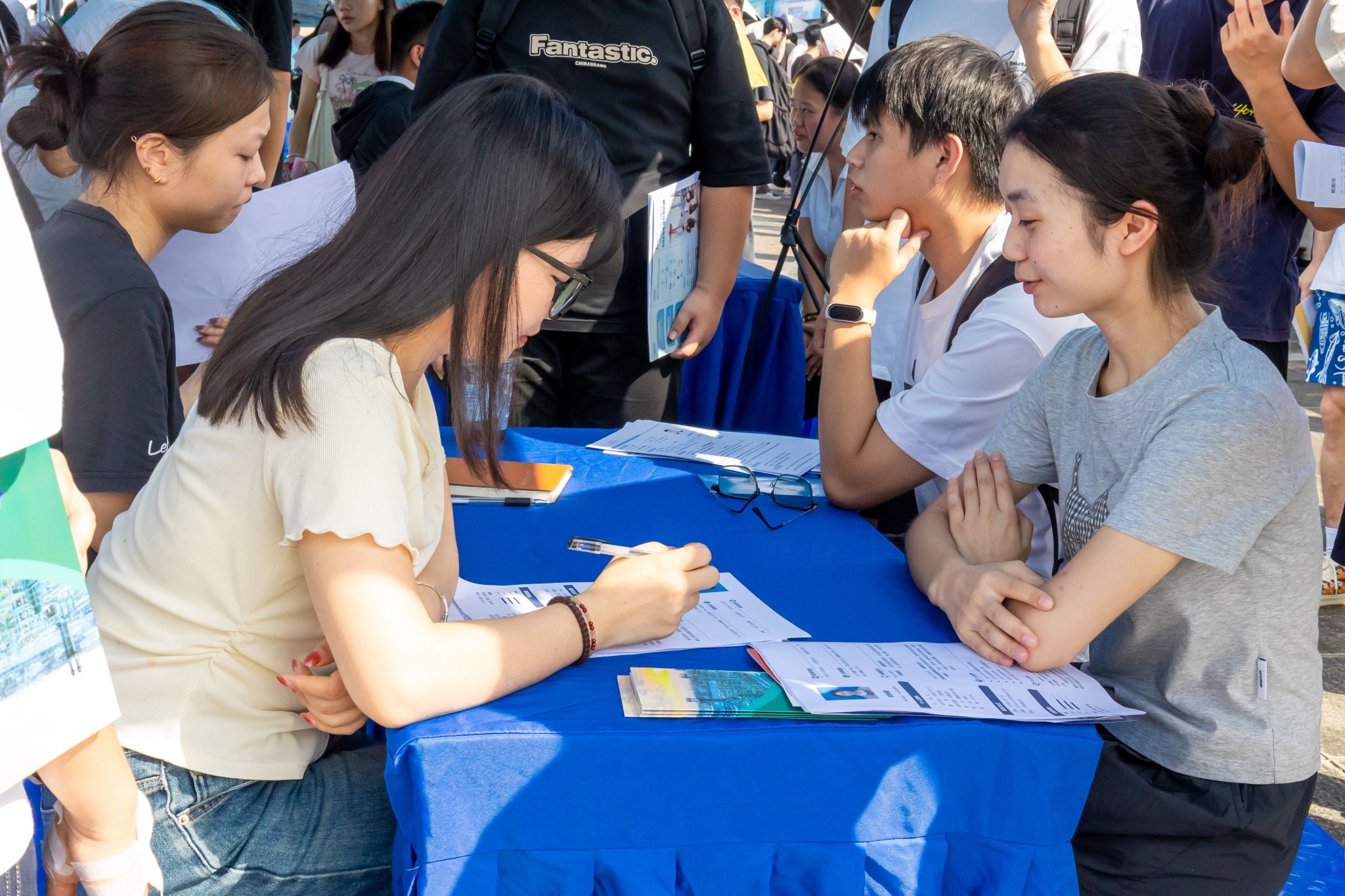 毕业生积极与用人单位洽谈