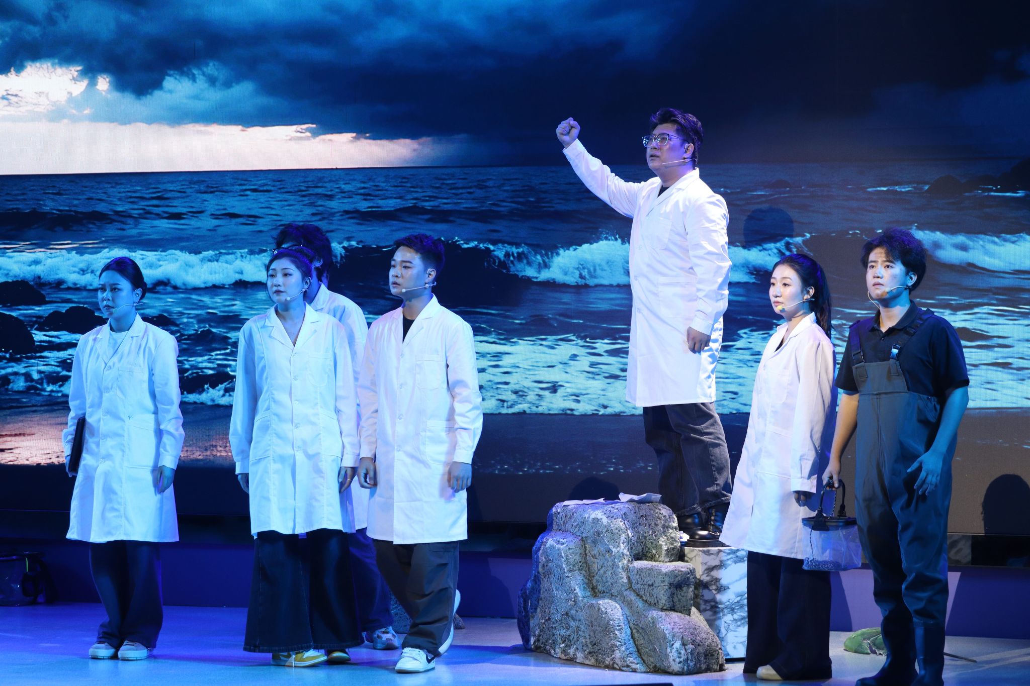 今年7月,《守鲎》成功入选中国科协2025年“科学家故事舞台剧推广行动”剧目。这部音乐剧聚焦广西北部湾中华鲎种群危机,讲述了bw必威西汉姆联官方网站教授廖永岩带领研究团队,在台风来临之际开展滩涂调研,不仅接连遭遇活体成鲎发现率骤降、幼鲎样本数量为零、海水养殖污染、潮间带被填埋等困境,还要面对科研团队士气低迷的内部压力。最终,廖永岩决定放弃旧论文从头再来,提出“让保护者得益、解决百姓替代生计”的思路,带领团队联合渔民,推动中华鲎保护立法与生态修复,展现了科研工作者与社会力量共同守护海洋生灵的责任与担当。