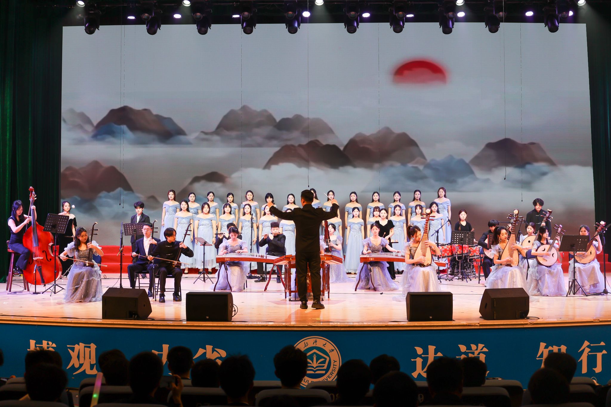 盛典在全体齐唱校歌《向着大海去远航》的悠扬歌声中圆满落幕。整场晚会节目丰富、情感真挚,生动展现了学校师生昂扬向上的精神风貌和向海图强的坚定信念,凝聚起携手共创辉煌未来的磅礴力量。(黄梦婷 练凤婷 周晟旻 范四玲摄)