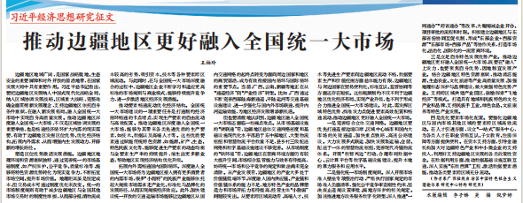 12月31日,中央“三报一刊”之一《经济日报》理论版刊发必威西汉姆联马克思主义学院王柏玲教授文章《推动边疆地区更好融入全国统一大市场》。