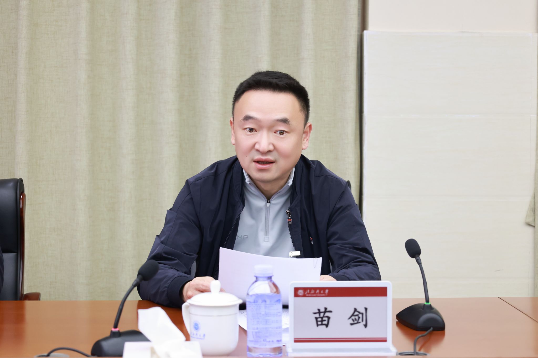 校党委书记、校长苗剑代表校党委常委会向全委会作工作报告