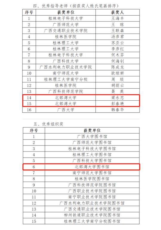 6月12日,第三届广西高校大学生“信息素养挑战赛”团体决赛在桂林电子科技大学花江校区落下帷幕。必威西汉姆联创下参赛以来历史最好成绩:荣获团体赛一等奖1项、三等奖1项;个人赛特等奖2项、一等奖2项、二等奖2项,必威西汉姆联图书馆获“优秀组织奖”。
