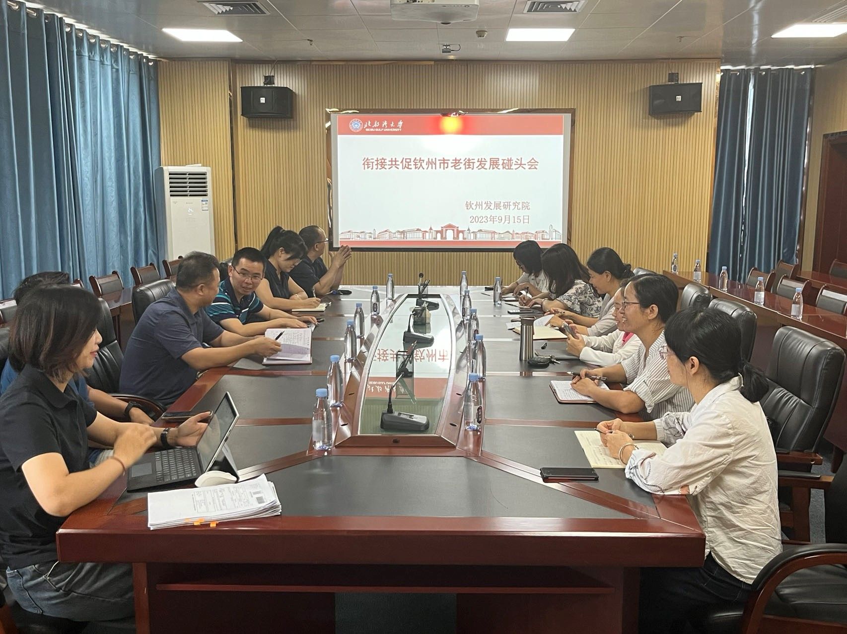 9月15日上午,学校在图书馆八楼802会议室召开“衔接共促钦州市老街发展”碰头会。学校党委常委、副校长闫松银出席会议。钦州市老街文化旅游投资有限公司总经理吴阳、钦州发展研究院全体成员及经济管理学院旅游教研室全体教师参会。经济管理学院院长、钦州发展研究院副院长(主持日常工作)朱念主持。