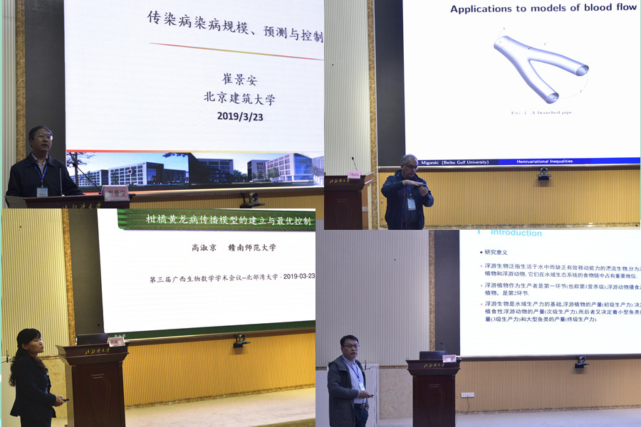 崔景安教授(左上)、 Stanislaw Migorski 教授(右上)、高淑京教授(左下)、赵中教授(右下)作学术报告