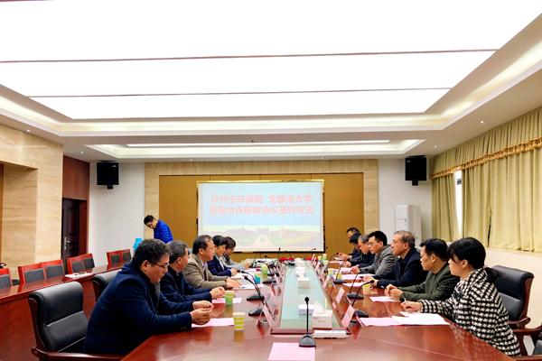 谢永福局长介绍了钦州市环境保护的严峻形势和钦州市环境保护与环境整治的规划,希望双方在前期合作的基础上进一步扩大合作空间,拓展合作领域,将协议中的科研合作、教师挂职、实验室共享、学生实习和等事项做细做实,合作形成常态化。