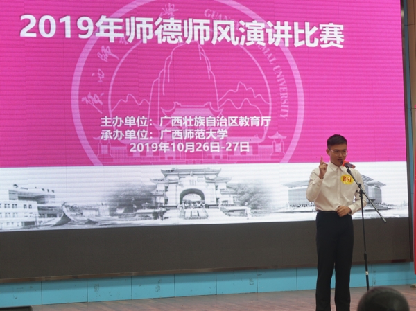 10月27日,广西壮族自治区教育厅主办的2019“立德树人 正风铸魂”师德师风演讲比赛在广西师范大学顺利闭幕。必威西汉姆联教育学院小教本181郑雅丹、资源与环境学院地理本182高宇成同学从51名参赛选手中脱颖而出荣获二等奖。