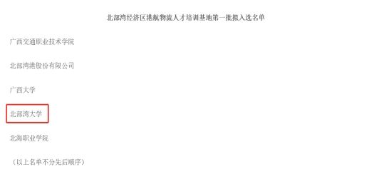 北部湾经济区港航物流人才培训基地第一批拟入选名单
