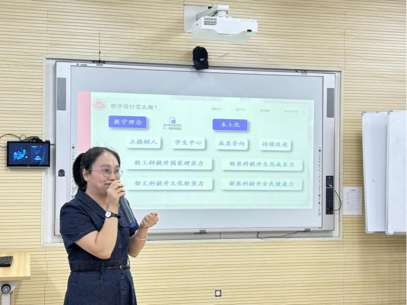 此次培训是校本培训师团队首次授课。建筑工程学院黄莹娜结合在青年教师教学竞赛中《理论力学》课程的教学设计案例,深入浅出地分享了有效教学设计的实践经验。石油与化工学院院长史忠丰以其在教师教学创新大赛中《物理化学》课程的思政建设成果为例,讲解了如何将思政元素有机融入课堂。经济管理学院黄娟展示了AI技术在教师备课中的应用,详细演示了如何利用智能工具优化教学内容和增强课堂互动效果。