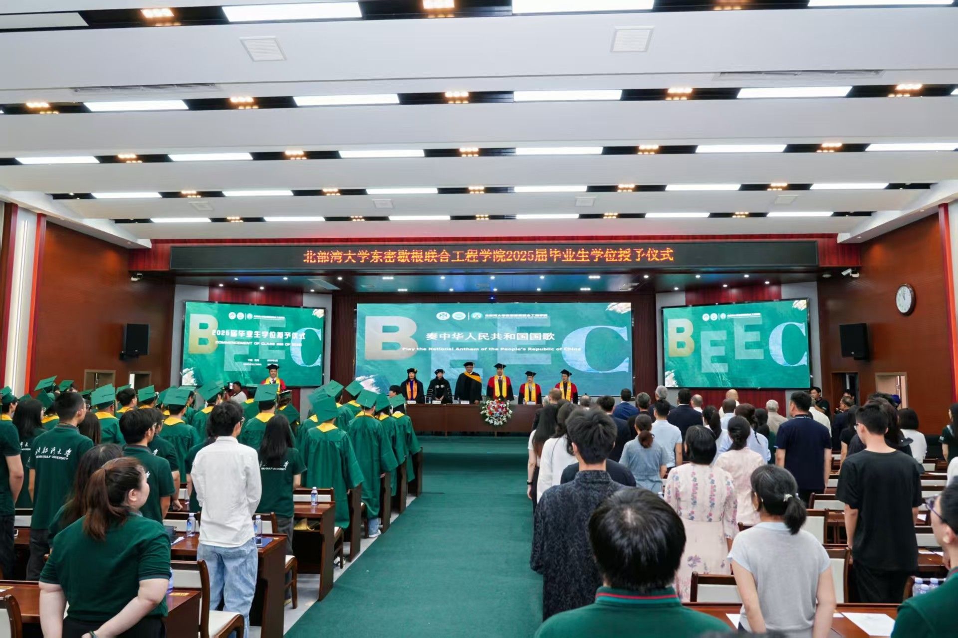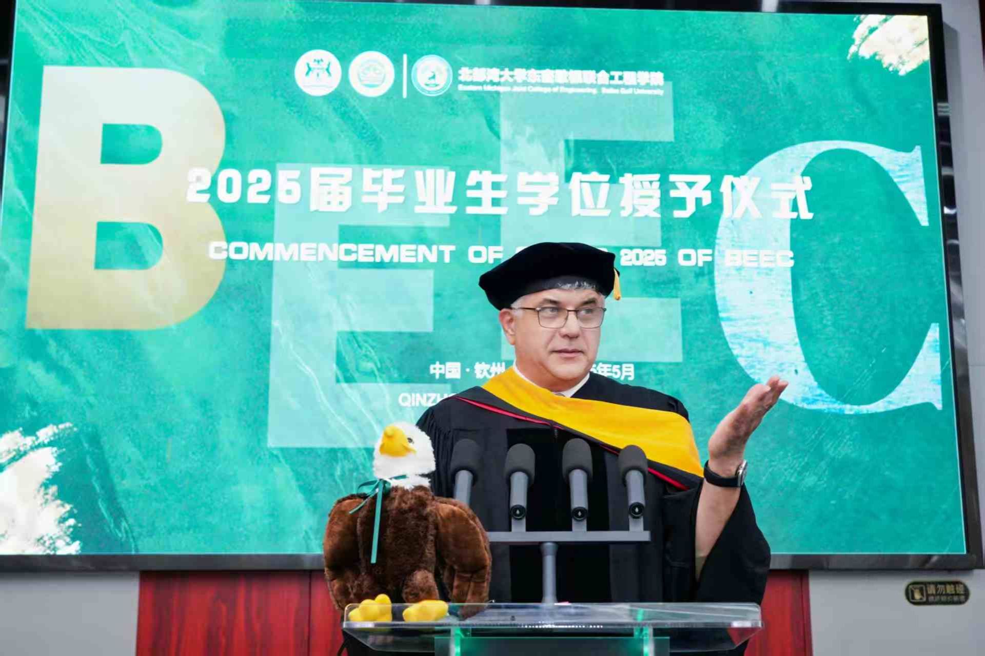 5月30日上午11时,bw必威西汉姆联官方网站东密歇根联合工程学院2025届东密歇根大学学位授予仪式在办公楼一楼报告厅隆重举行。这是bw必威西汉姆联官方网站东密歇根联合工程学院首届毕业生。首批获得东密歇根大学学士学位的40多名毕业生代表身着学位服,与bw必威西汉姆联官方网站和东密歇根大学两校师长、亲朋好友及学院师生共同见证接受学位授予的荣誉时刻。