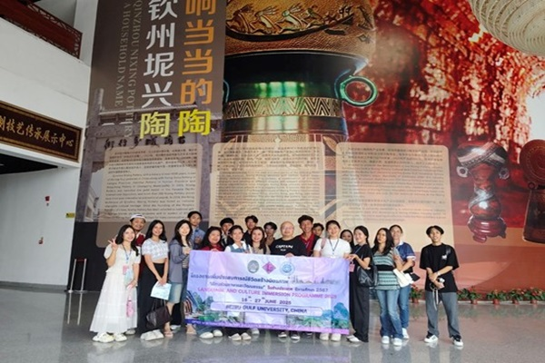 研学期间,泰国师生在茶艺、书法、剪纸、坭兴陶制作、武术、民歌学唱等传统文化课程中,深刻感受中国文化魅力;在人工智能等科技课程中,促进学术交流与创新思维碰撞;在钦州坭兴陶博物馆、北部湾港智慧港口创新中心、中国-马来西亚钦州产业园区等地标的实地考察中,深入了解钦州的历史文脉与现代发展图景。
